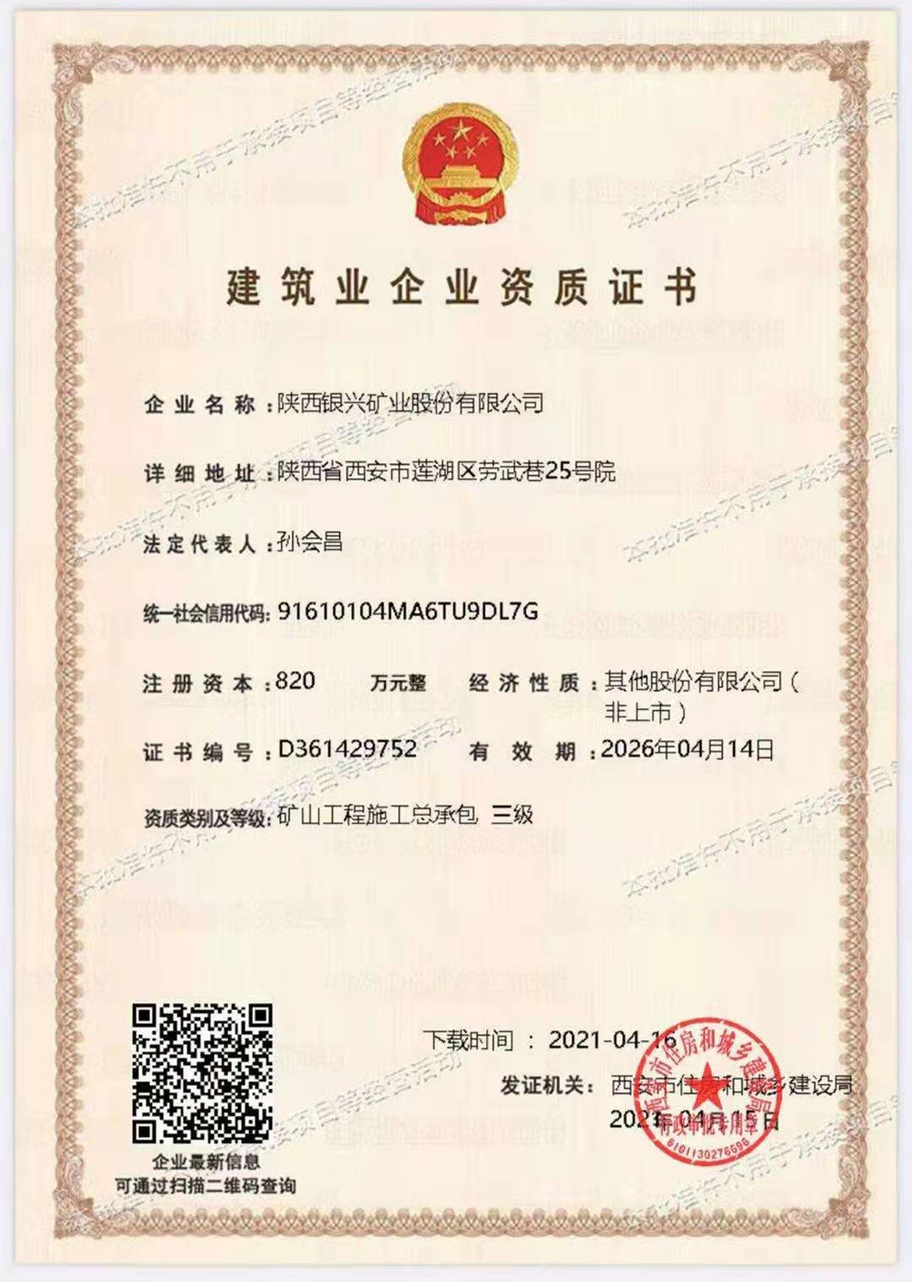 建筑業企業資質證書