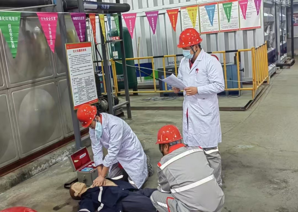 此次演練模擬了員工在進(jìn)行設(shè)備巡查時(shí),崗位工不慎發(fā)生觸電人身傷害事故。事故發(fā)生后,現(xiàn)場(chǎng)人員迅速切斷電源,防止事故進(jìn)一步擴(kuò)大。同時(shí)立即撥打120,并迅速向應(yīng)急辦公室報(bào)告事故情況,應(yīng)急辦公室立即啟動(dòng)了人身傷害事故(觸電)應(yīng)急預(yù)案。