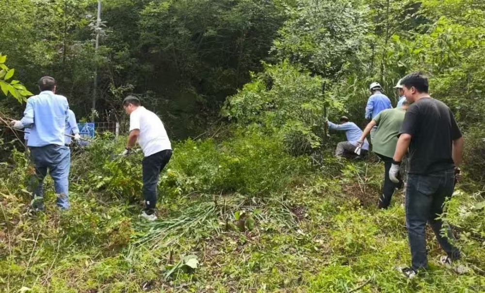 因長(zhǎng)期停用,炸藥庫(kù)周邊雜草叢生、灌木密布,部分區(qū)域雜草高達(dá)兩米,不僅影響安全巡查,還存在多種風(fēng)險(xiǎn)。現(xiàn)場(chǎng),職工們手持割草機(jī)、鐮刀、鐵鍬等工具,分工協(xié)作:年輕職工主動(dòng)承擔(dān)割草、砍伐重任,老員工則負(fù)責(zé)理碎石、搬運(yùn)雜物,黨員先鋒們更是一馬當(dāng)先,帶頭攻堅(jiān)復(fù)雜區(qū)域。盡管汗水浸透工裝,雙手磨出水泡,但無人喊苦叫累,展現(xiàn)出強(qiáng)大的團(tuán)隊(duì)凝聚力。