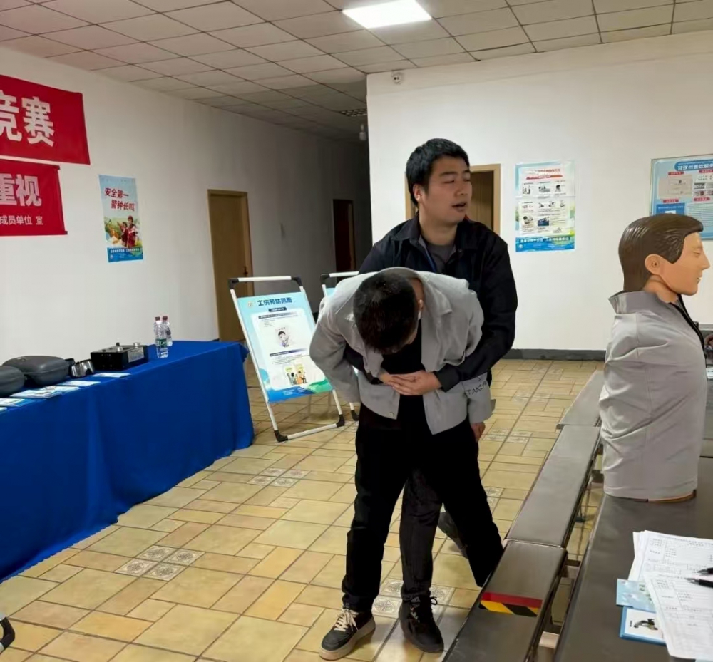 為了讓員工們更好地掌握工傷預防技能,活動還設置了現場演示和互動環節。老師親自示范急救的操作方法,并邀請員工上臺進行實際操作,及時糾正不正確的操作方式。4名員工在老師的指導下完成了心肺復蘇和人工呼吸的操作。在互動問答中,員工們積極提問,就工作中遇到的安全疑問與老師展開熱烈討論,現場氣氛十分活躍。