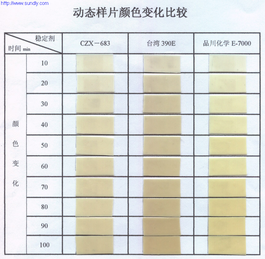 其中,無毒穩定劑1#――CZX-683 2#――臺灣390E 3#――品川化學E7000